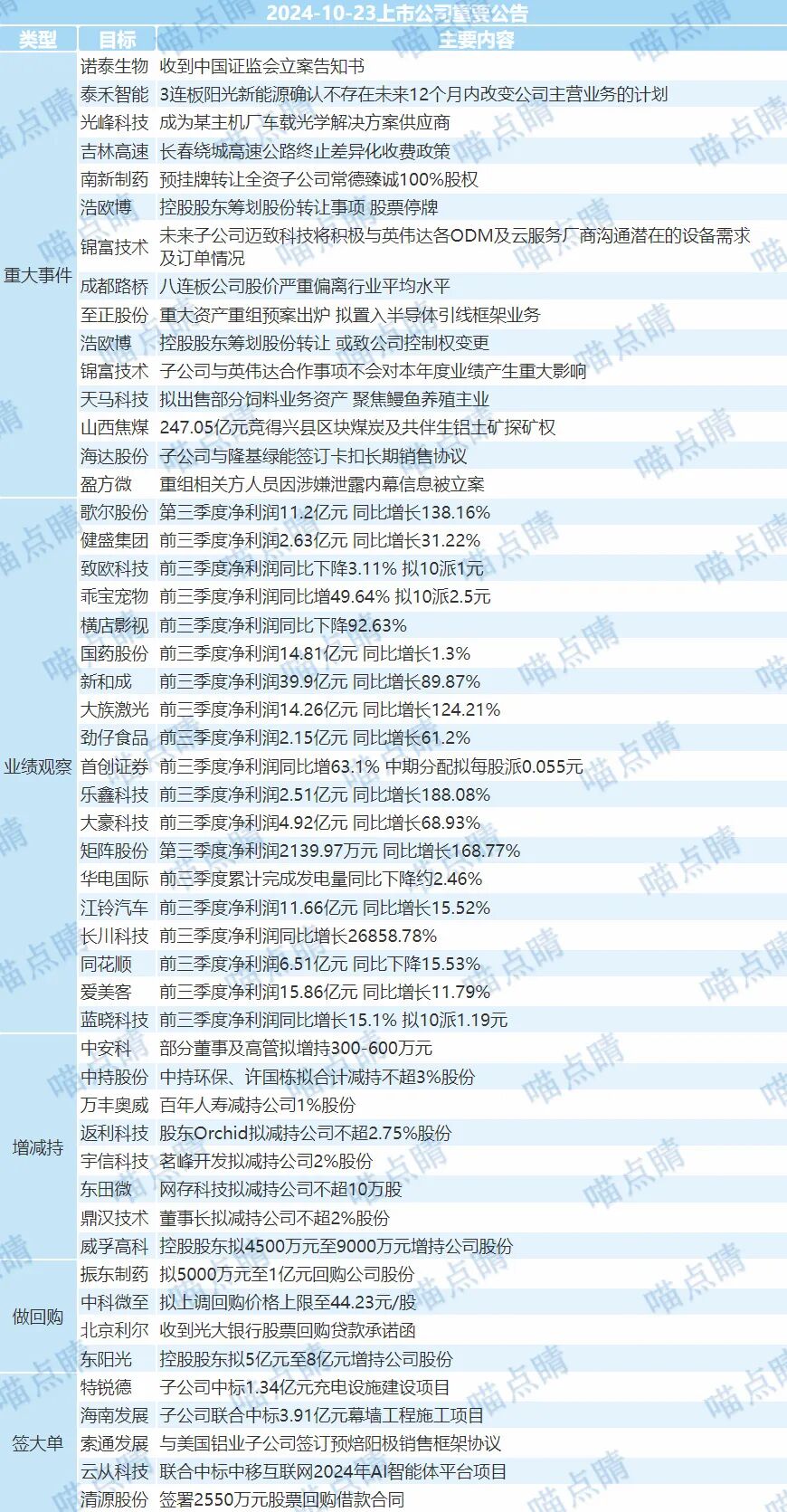 3、歌尔股份第三季度净利润11.2亿元,同比+138.16%,Q3净利环比+32.39%,前三季度净利润快赶上机构全年预期了,确实挺猛的。同时,公司计划每10股派现1元,累计分红3.39亿元,支付率14.47%,行业复苏回报股东,举双手支持。