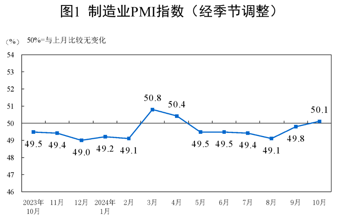 不过昨天在基本面层面有一个利好,却被市场一定程度的无视了。中国10月官方制造业PMI录得50.1,超过市场预期值49.9,这是PMI时隔半年再次回到扩张区间,上一次3月进入扩张区,主要是春节后的脉冲效应,属于季节性因素走强。