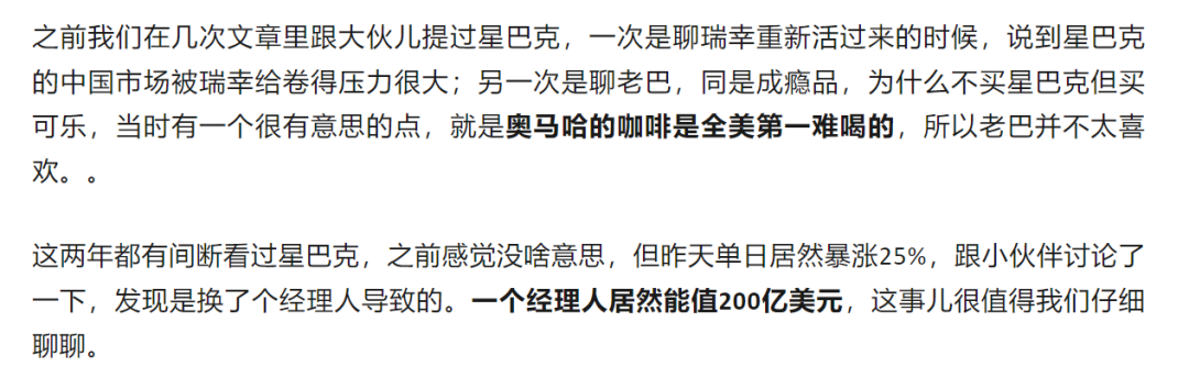 星巴克这回肯定是要动中国业务的,最后到底是卖了还是找战略合作伙伴并不清楚,不过出现这种操作一般都是重要信号,消费或会有逆转可能了?