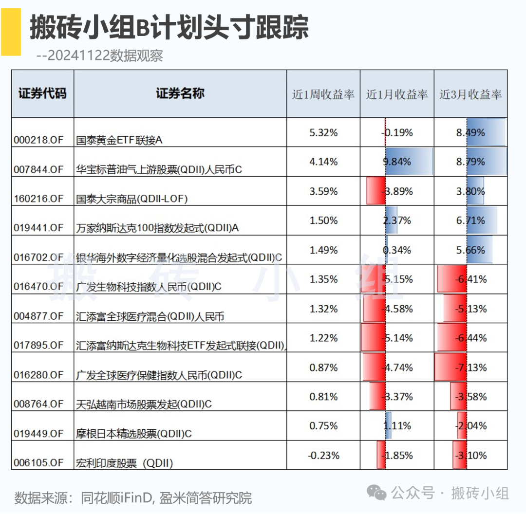 B计划这边看下面列表就好,这个是国内资产的重要补充,分散风险。医药这个月集中回落,主要是新卫生部长影响了对产业商业模式后续的判断,我们也多观察下,不着急补仓。日本越南印度的下跌本质上是因为强美元,也是正常回调,我们会持有并继续加仓。
