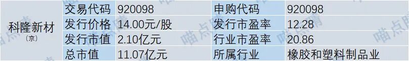 科隆新材主要从事液压组合密封件和液压软管等橡塑新材料产品的研产销。公司是北交所的,申购需先缴款,大伙自行视情况考虑吧。