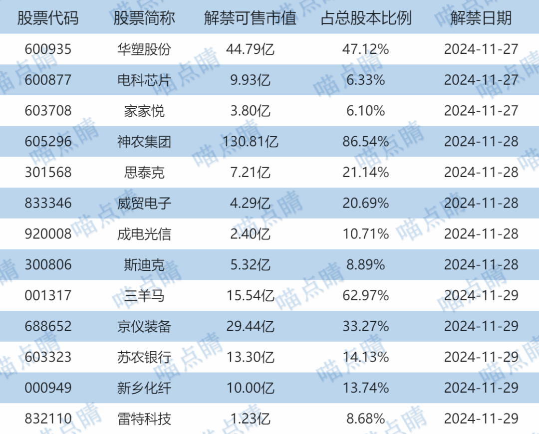 【限售解禁】
