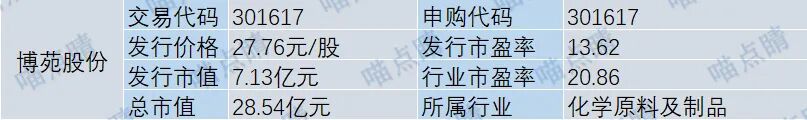 博苑股份主要从事精细化学品研产销,产品及服务广泛应用于医药、化工、光电材料、饲料、食品等领域。从历史统计来看,公司各项指标对应破发率相对较低。