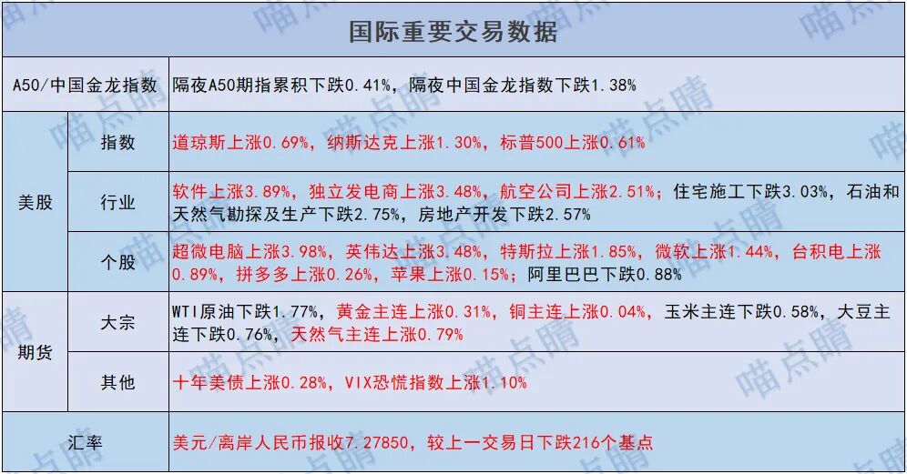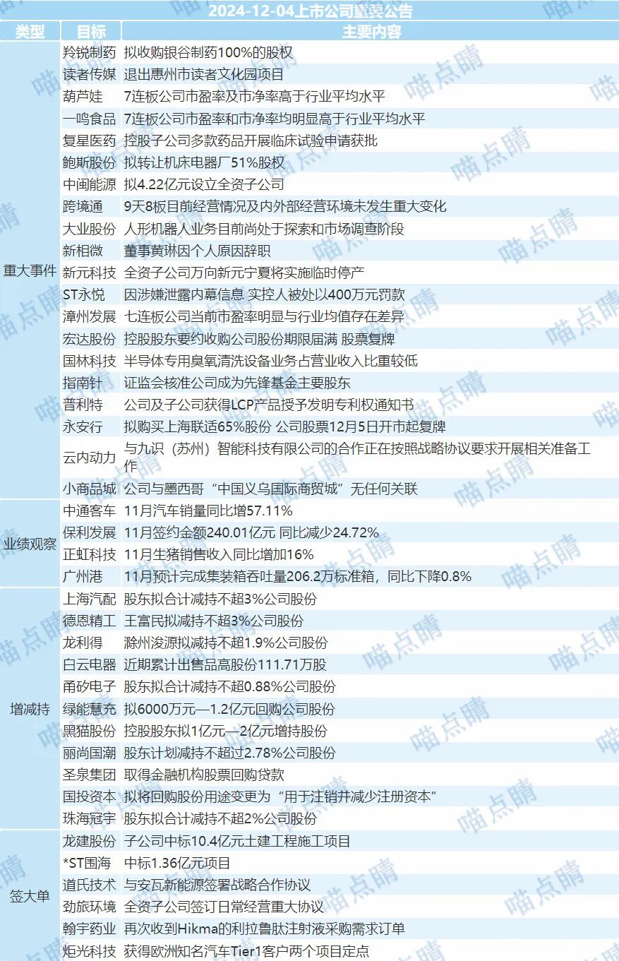 2、富时中国A50指数纳入北方华创,删除华能水电,备选股名单包括寒武纪-U、中信建投、上汽集团、赛力斯、金龙鱼,该变更将于12月20日星期五收盘后生效。