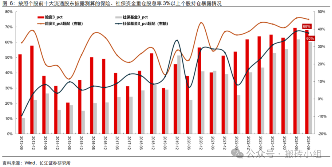 保险和社保等追求绝对收益的资金是在持续超配高股息资产的,往后看他们依然会继续超配高股息资产,并且资金层面还有增量支持,大趋势是依然会保持的。