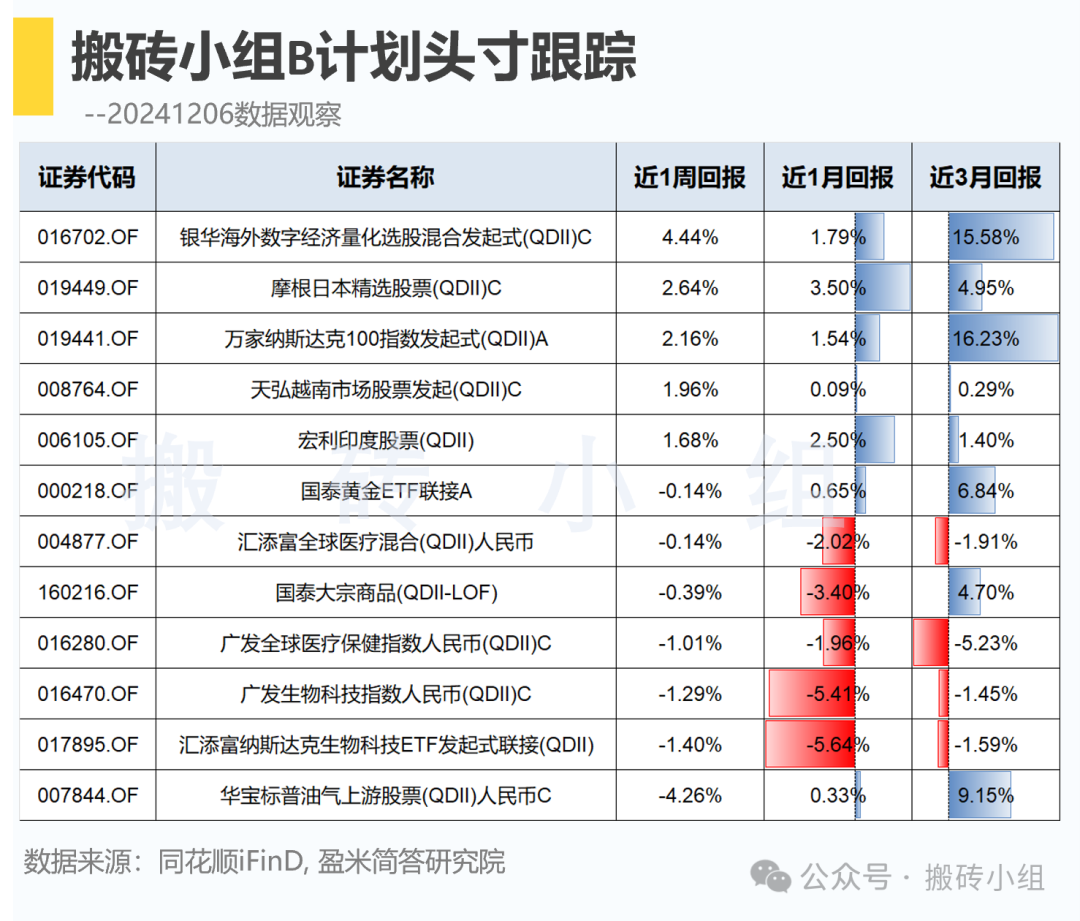 B计划这边继续增补黄金,剩下的头寸均匀铺在日本越南印度以及美股上。本周B计划持仓基金表现如下: