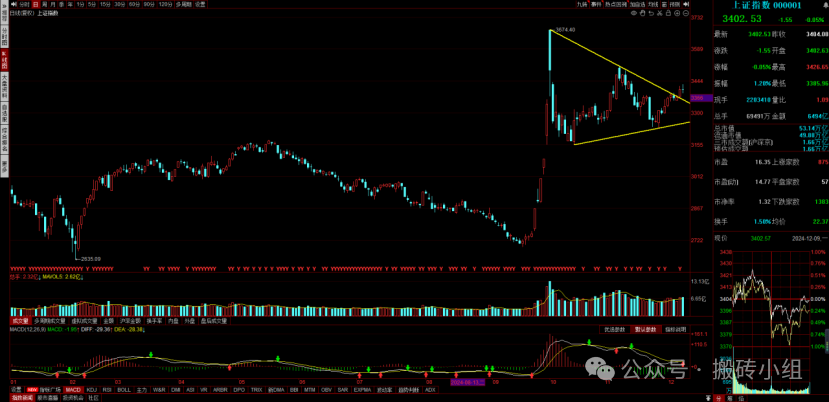 经过前面的这一段震荡,不少市场参与者已经把预期调低下来了,并且今天超过20个涨停板也是预示着短期情绪的告一段落,这里再次启动可以看做是一次新周期的开始,中期看或许可能会成为跨年行情的起点。如果从图上看,上证指数已经确认突破了收敛三角形,战略上务必看多做多。