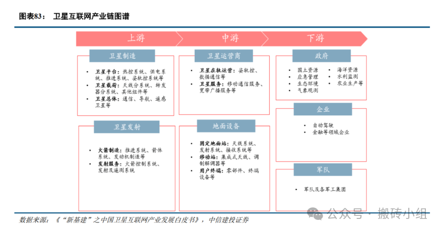 3)应用端配套空间逐步扩大,下游应用占据重要地位,地面接收终端及配套设施的市场空间大