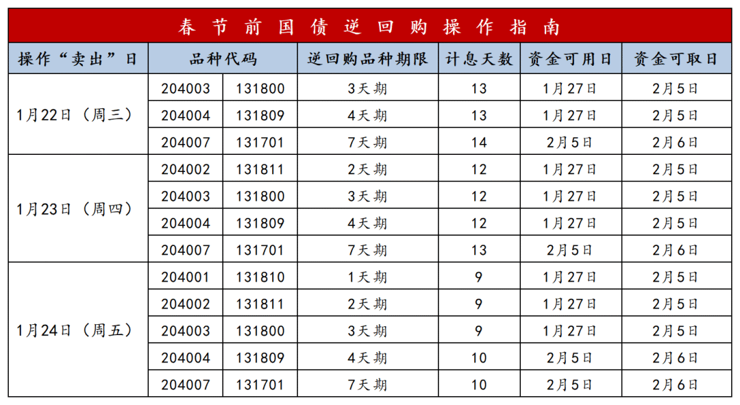 对了,咱们这也有很多小伙伴开启假期模式了,还是照常给大家提个醒,一般节前资金偏紧,国债逆回购收益率可能会高些,我简单整理了逆回购的操作指南,大家可以视情况参与。