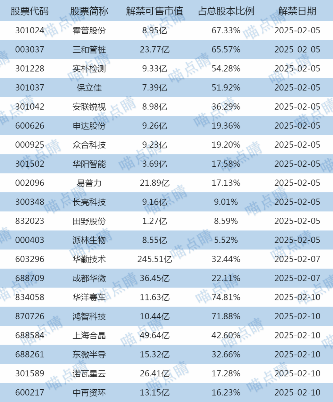 【限售解禁】