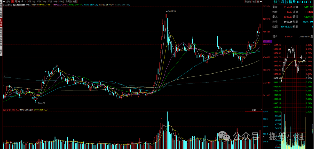 从我们看到的现象来看,港股这一波上涨应该是内外资共振的买入,内资的逻辑是信心的提振,外资的逻辑是相信美股AI软硬件的机会会在中国再来一轮,叠加对抗减弱的预期。