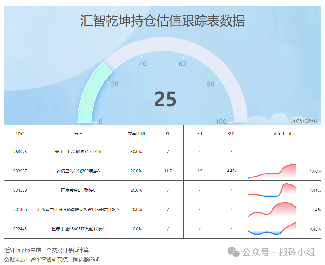 上面4条线索在汇智乾坤这边就体现得更明显了。首先汇智也停了黄金的发车,同时按计划对港股恒科及A股科技基金进行部分止盈,也相应地对北证50开始了布局。算是一次特别发车,北证在这几轮的表现中都是急先锋,弹性也比较好,所以在市场情绪明显好起来的背景下,减掉高位的科技,切进北证,做一次资金的高切低同时保持组合的弹性。针对北证的头寸,我们是目标盈的思路,达到目标盈利比例后即止盈,跟车的小伙伴要关注组合的发车,关注我们的文章,到时都会同步跟进。