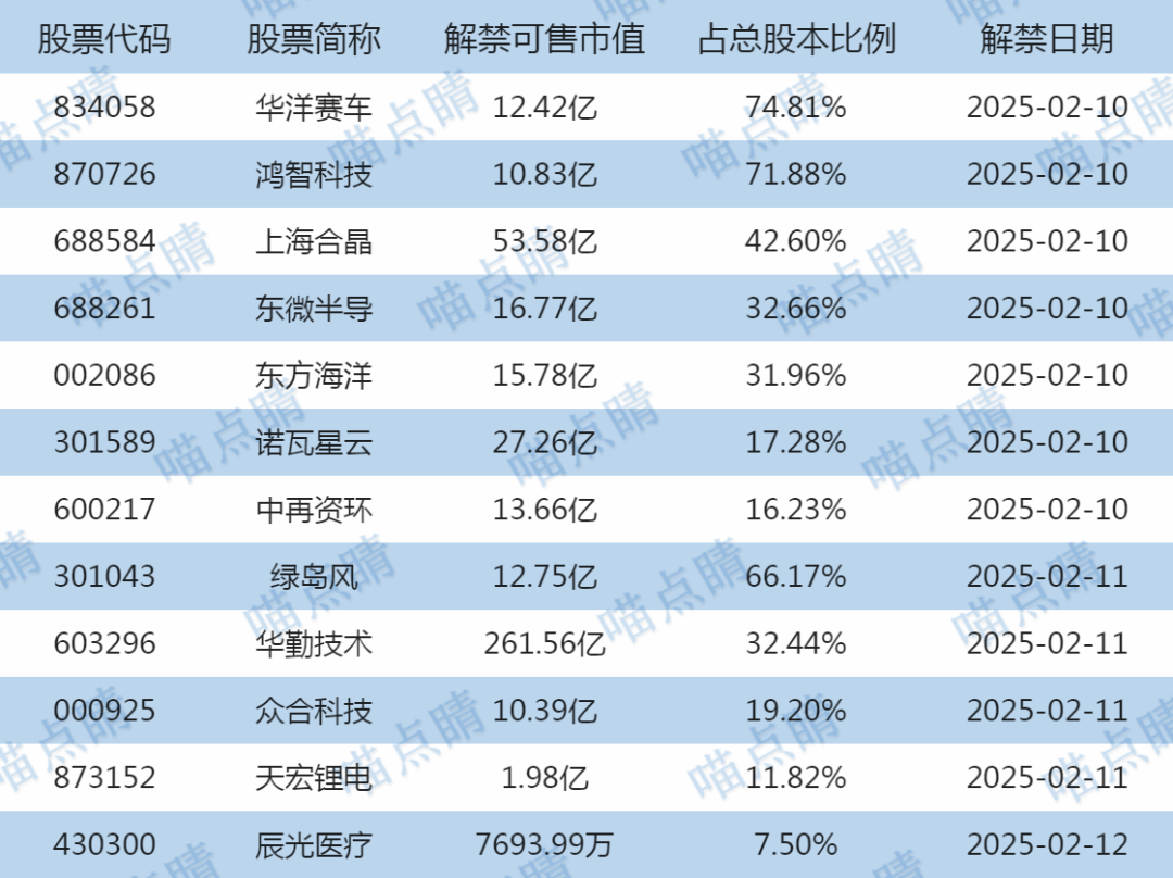 今天华洋赛车、鸿智科技等有大额可售解禁。