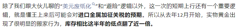 首先是黄金,今天金价又再创新高了,趋势非常强。这一轮我们聊过黄金的趋势是纽交所的库存异常所导致的(文末有原文跳转链接),到目前这个状态还在持续,但到3000点的重要关口是一定要注意了,接近这个节点我们会做对应的止盈动作。