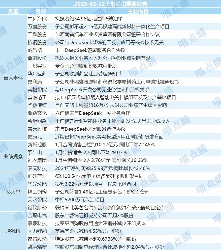 3、昨天盘后又有多家上市公司披露与DeepSeek相关的事项,部分公司表示正与DS融合,也有连板的上市公司提示风险,撇清和DS的关联。当下DS情绪炒作高昂,这类提示更多被视而不见,这块咱们要留个心眼,特别是后排逻辑脆弱的标的,毕竟其具备涨得少且跌得多的特殊体质。。