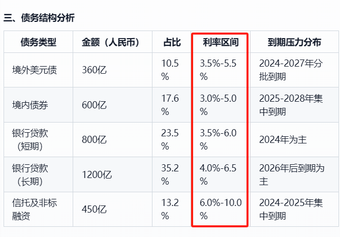 我昨天让DS帮我测算了下公司的债务情况,大家感受下数字,再体会下这令人窒息的利率,就知道为啥几十个亿无法解决问题,必须上百亿才能解渴了。。这组数据是截止23年末,和现在会有一定出入,但大概体量上应该是差不多的。