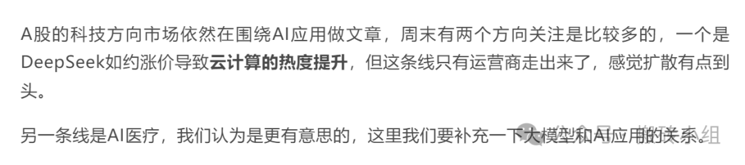 风格角度上,市场依然围绕大科技方向,我们这段时间一直在看软件,这几天文章说了要在三月开始切回硬件,最近准备切硬件的作业,看soc芯片和消电的新变化,还没开枪,今天就直接干起来了,前几天留言说要跑我前面的读者,真跑到了前面,服!