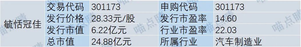 毓恬冠佳是以汽车天窗为主要产品的汽车运动部件制造商。从历史统计来看,公司各项指标对应破发率相对较低。