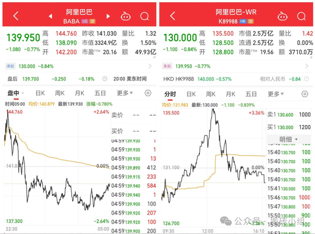 港股市场大家都在关注阿里和腾讯,特别是阿里的波动太明显了,晚上美股高开低走,白天港股低开高走,背后反映的是外资对冲基金看到高开了砸,南下资金看到低开了买,神仙打架的感觉。。